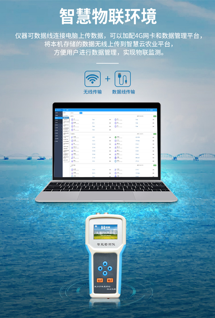 1、☆仪器可加配4G联网功能和数据管理平台,将本机存储的历史数据无线上传到智慧云农业平台,方便用户进行数据管理和长期分析。